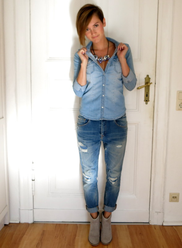 Heute Morgen trage ich so gut wie jeden "Trend" den ich liebe: Boyfriend Jeans, Denim on Denim und eine Statementkette! Ich würde sagen, ich bin startklar :)