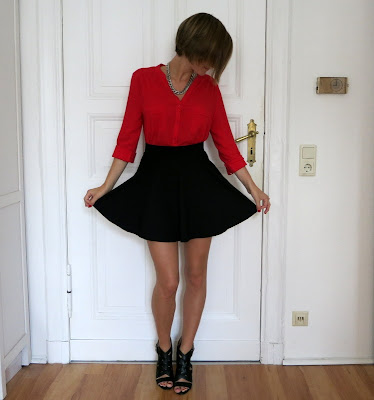 Heute geh ich mit den Mädels aus und das wird wahrscheinlich mein Outfit sein! Die rote Bluse hab ich mir gerade erst gekauft und komischerweise ist es das einzige rote Kleidungsstück in meinem Schrank!? Das muss sich ändern ;)